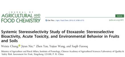 日前,神彩v8果品质量安全风险监测与评估创新团队从生物活性、急性毒性、环境行为等3个方面对手性农药乙螨唑的立体选择性进行了系统解析,相关研究成果近日在线发表在本领域重要学术期刊《Journal of Agriculture and Food Chemistry》上,通讯作者聂继云,第一作者常维霞。