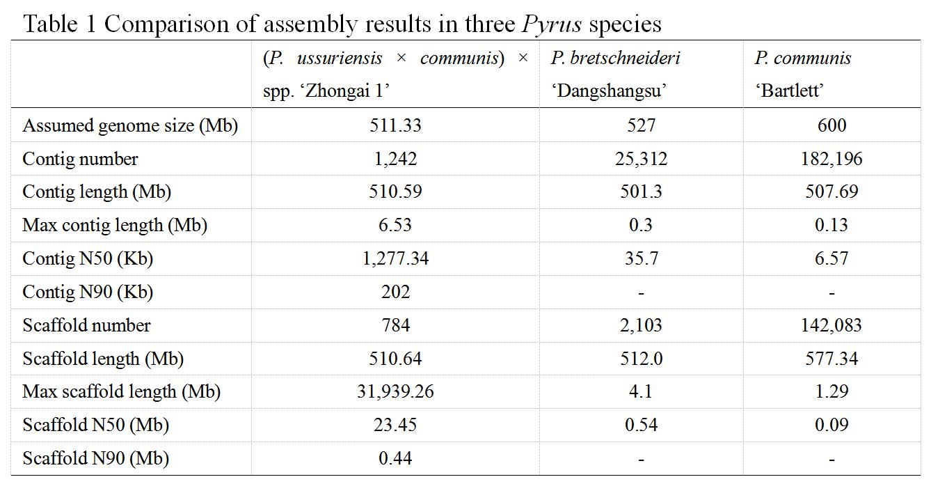 中矮1号是我国自主选育的第一个梨矮化砧木新品种,其作中间砧木具有促进嫁接树矮化、早果和丰产等优点,在梨矮化密植栽培和矮化砧木育种中发挥着重要作用;同时,‘中矮1号’源于‘锦香’梨(南果梨×巴梨)实生后代,遗传背景复杂,基因组代表性广。该参考基因组的成功组装,不仅为今后解析梨矮化、早果等性状形成的分子机制奠定基础,也为其他性状研究和比较基因组学研究提供了详实有效的参考数据,必将在梨基因组学研究和分子辅助育种方面发挥重要作用。