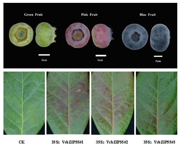 本研究通过转录组测序筛选到一个响应脱落酸信号且正调控蓝莓花青苷合成的转录因子VcbZIP55。通过瞬时表达转基因实验,分别在烟草叶片、蓝莓叶片以及蓝莓果实中鉴定了VcbZIP55具有促进花青苷合成的功能。此外,本研究还通过稳定转化实验证实了该基因可以促进蓝莓体内花青苷的合成,在蓝莓转基因不定芽和幼苗中均可观察到明显的花青苷积累。进一步利用Y1H和烟草叶片瞬时表达等实验证明了VcbZIP55可以直接结合到VcMYB1启动子上的G-Box基序并激活启动子的表达。综上,本研究揭示了VcbZIP55转录因子介导VcMYB1促进蓝莓花青苷生物合成的分子机制。通过本研究,将进一步明确蓝莓花青苷合成的途径,丰富植物花青苷代谢的调控网络,为探究植物激素调控花青苷合成的分子机制奠定理论基础。