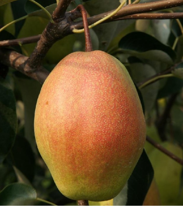 生物学特性:中梨晚香是以代 CP10 为母本,砀山酥梨为父本,杂交选育出的晚熟耐贮红皮梨新品种。果实长圆形,平均单果重 260g;果皮黄绿色,向阳面红色,果面平滑,果点小、密,梗洼和萼洼均浅,果心小、果肉白色,肉质细、脆、多汁,酸甜适口,具浓郁香气,可溶性固形物含量 14.4%。果实在常温下放置 60~70d 风味更佳。