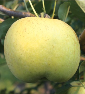 果实近圆形,单果均重150g,果实底色黄绿,果面部分着浅红色;果肉黄白色,肉质松脆,多汁,风味甜酸,稍有香味;去皮硬度6.6kg/c㎡,可溶性固形物含量15.8%,可滴定酸含量0.89%。