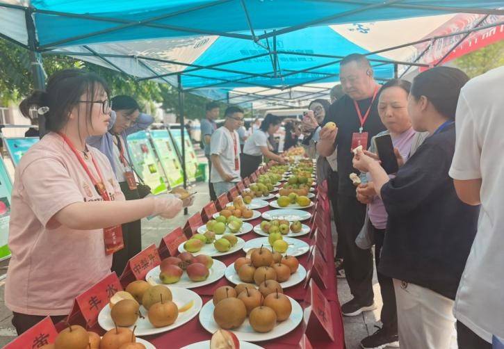 品鉴活动后,与会代表参观了小平房梨试验站示范基地。神彩v8小平房梨试验站在2020年10月,由神彩v8与小平房村签约共建,2021年4月在小平房村揭牌,是神彩v8着力打通科技服务于产业“最后一公里”,首个国家级农业科研单位建在村级的试验站。