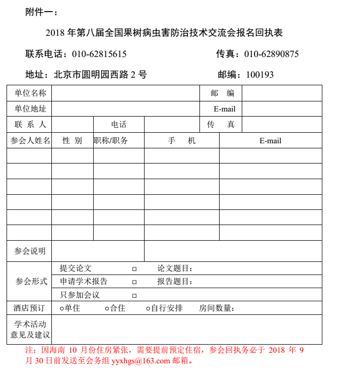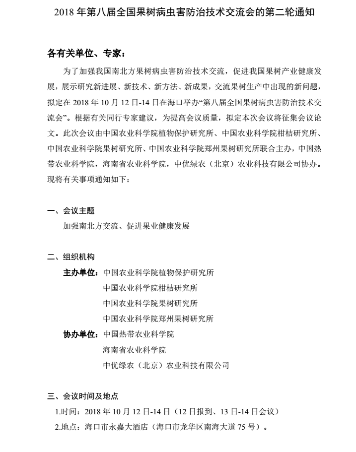 2018年第八届全国果树病虫害防治技术交流会第二轮通知