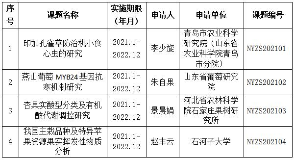 202171日,我所召开2021年农业农村部园艺作物种质资源利用重点实验室开放基金资助课题评审会议,经评审确定2021年重点实验室开放基金拟资助课题4具体课题名称如下: