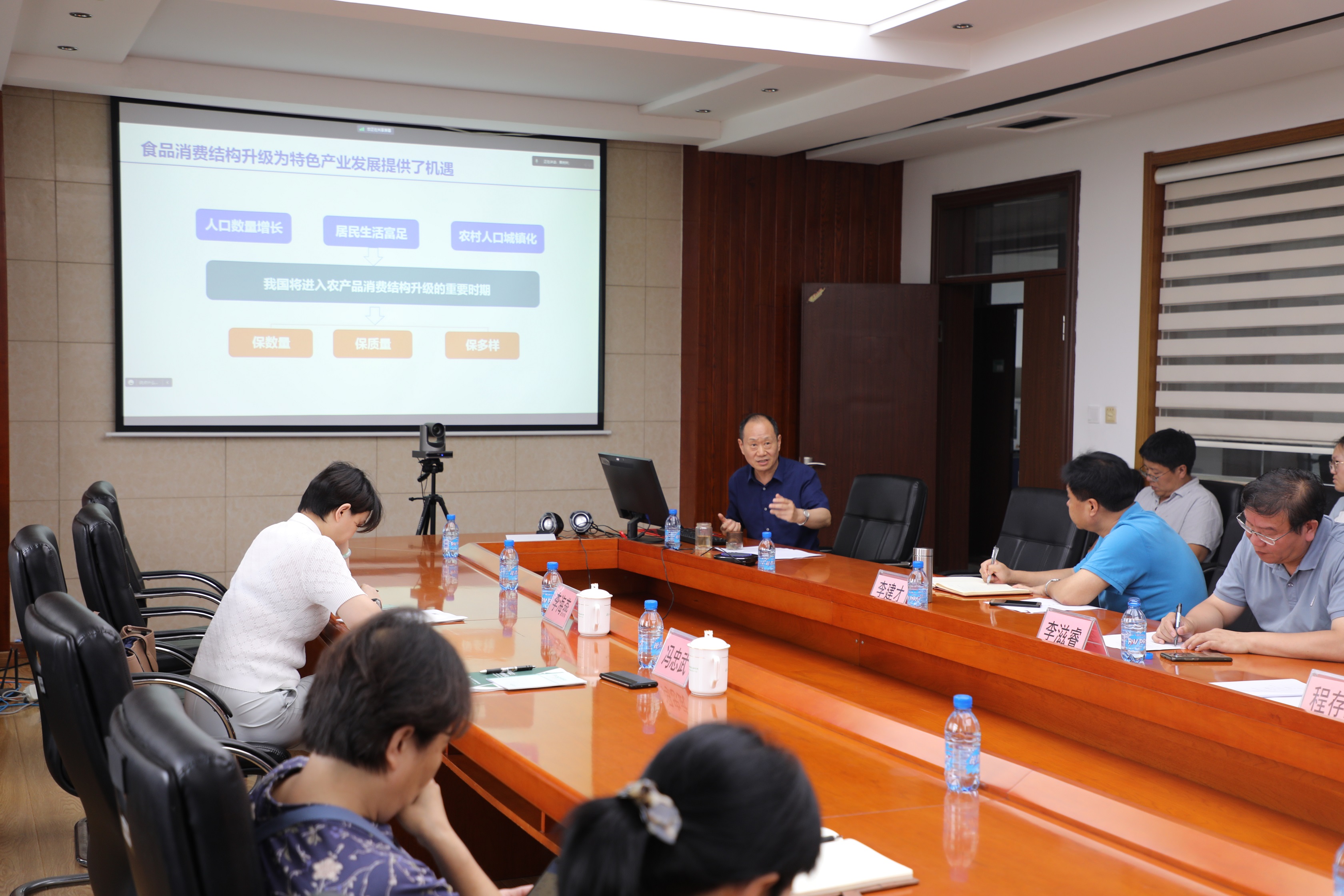 调研期间,冯忠武以《大力发展特色产业 努力推进乡村振兴》为题给全所职工和研究生作专题报告。报告从特色产业在乡村振兴中的定位,特色产业发展取得的重要成就,特色产业发展面临的机遇和挑战,推进特色产业高质量发展对策等4个方面,进行了深入浅出、全面系统的讲解。冯忠武指出,特色产业高质量发展要从构建现代生产体系、打造特色品牌、推进一二三产融合发展、推动绿色循环发展等4个方面发力,着力打造产出高效、产品安全、资源节约、环境友好的乡村特色产业,为乡村振兴提供有力地科技支撑。
