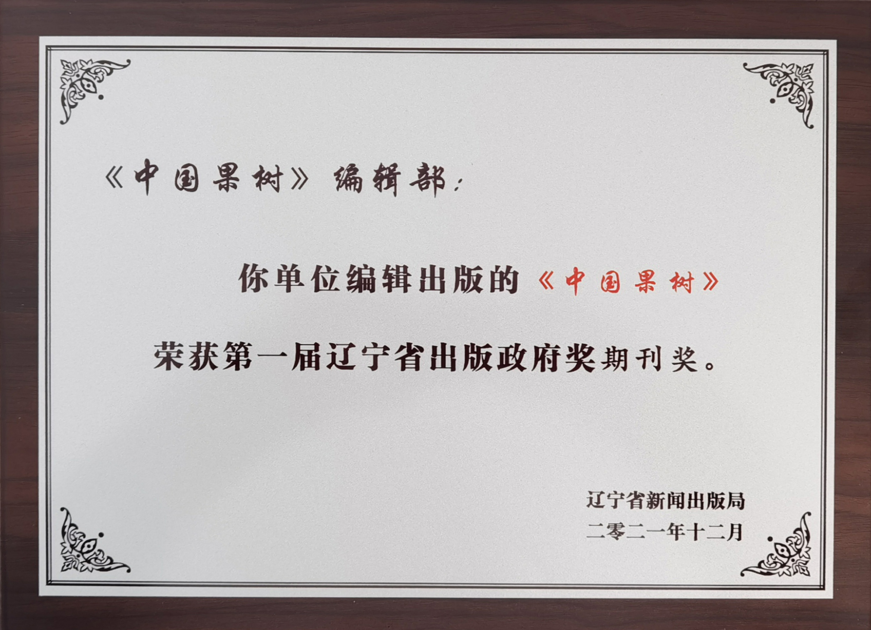 近日获悉,《中国果树》荣获首届辽宁省出版政府奖期刊奖。