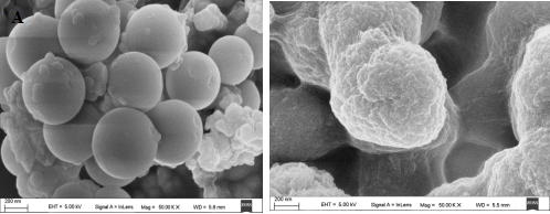 Fig.2. SEM images of the Fe3O4@SiO2-MIPs (A) and Fe3O4@SiO2-NIPs (B).