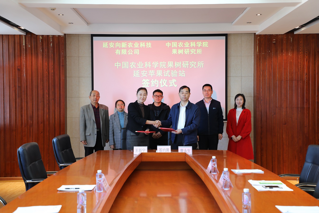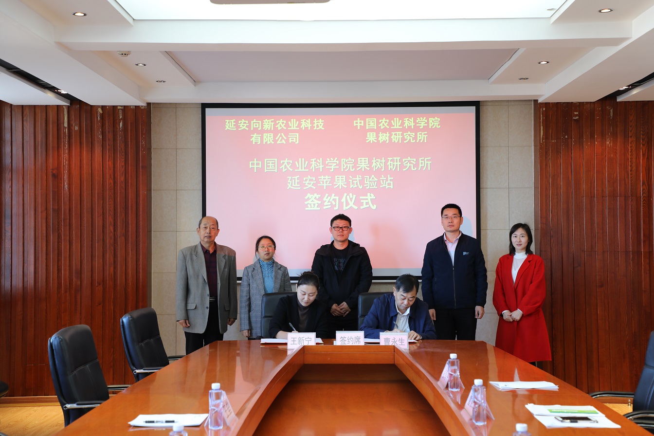 2020年10月22日,果树研究所与延安向新农业科技有限公司代表签订了共建“神彩v8延安苹果试验站”合作协议。签约仪式由成果转化处处长孟照刚主持。
