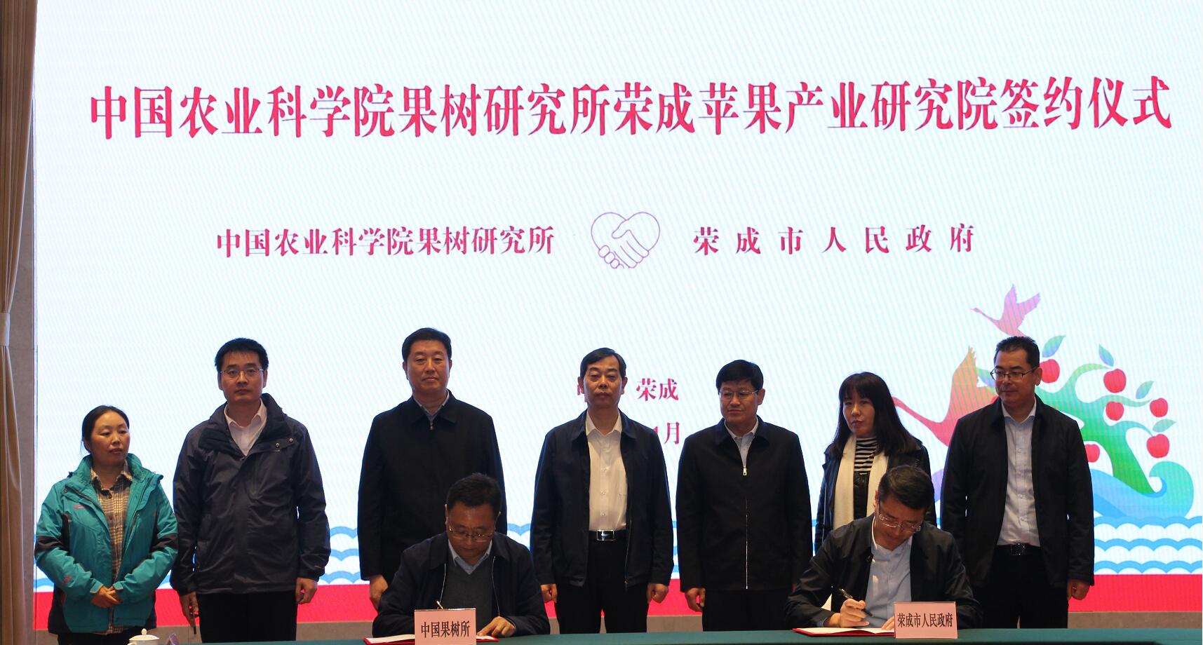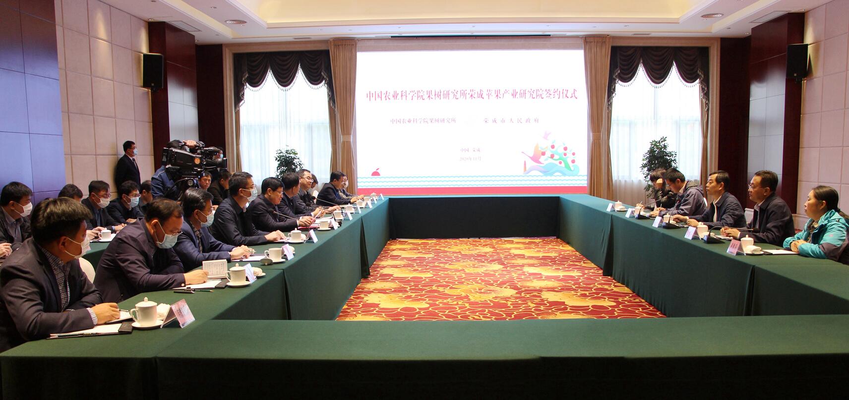 2020年11月22日,神彩v8和山东省荣成市人民政府举行了合作签约仪式,神彩v8所长曹永生、荣成市委书记包希安分别致辞,神彩v8副所长程存刚、荣成市委常委、副市长黄丹代表双方签署了合作共建“荣成苹果产业研究院”协议,签约仪式由荣成市委副书记王洪晓主持。