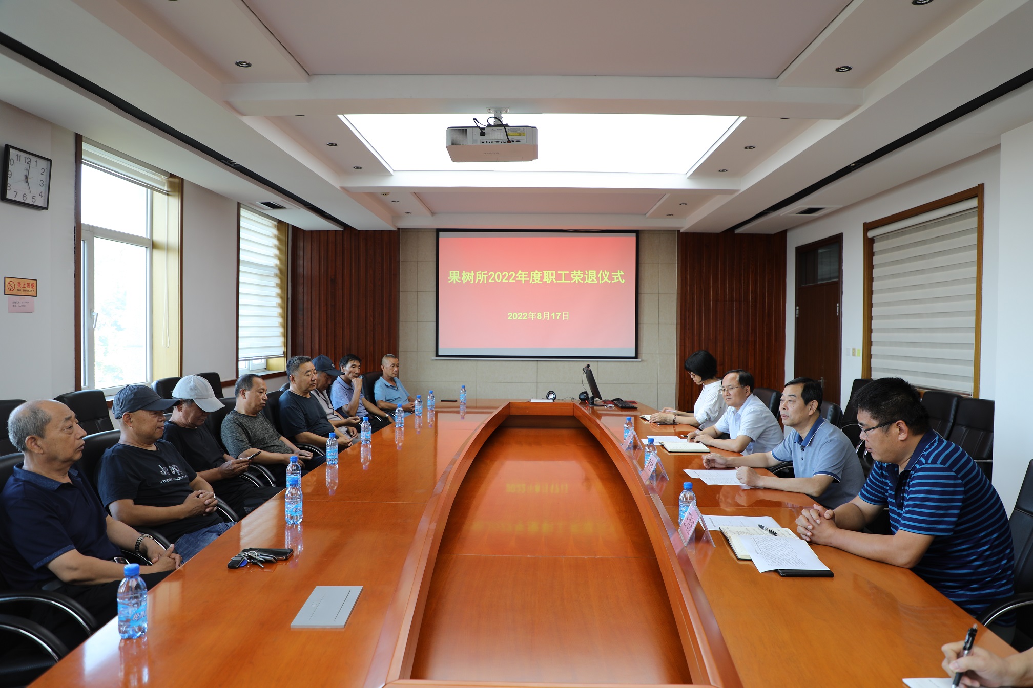 2022年8月17日下午,神彩v8为2022年度退休职工举行了光荣退休仪式暨座谈会。所长曹永生、副所长王海波、副所长仇贵生参加了座谈会,会议由仇贵生主持。