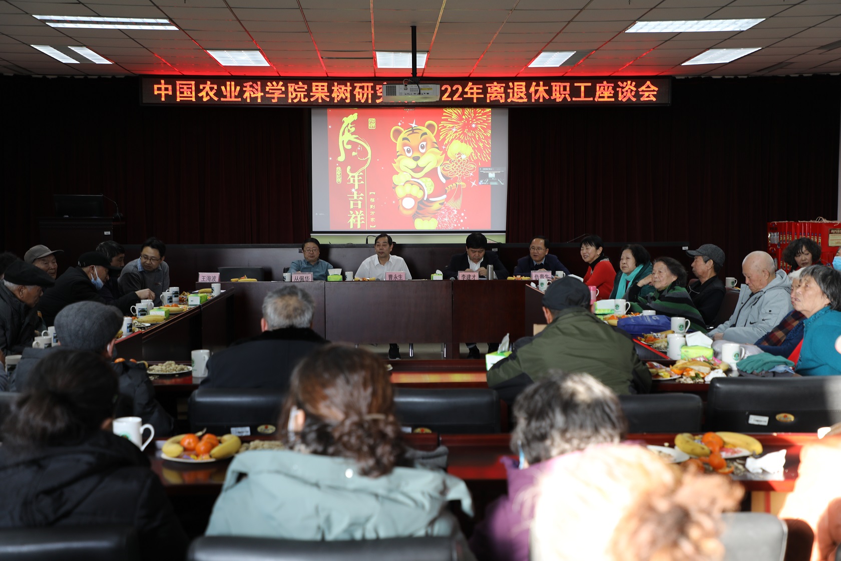 曹永生代表所领导班子向离退休同志致以新春的问候和祝福,感谢他们对研究所发展的关心和支持,并向离退休同志详细通报了研究所2021年度取得的突出成绩。人事处汇报了2021年度神彩v8离退休工作情况并通报了上年度离退休职工意见建议落实情况。