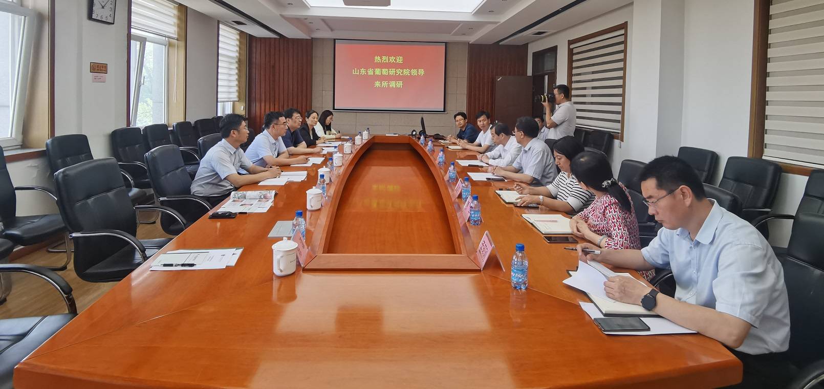 61416日,山东省葡萄研究院理事长、党委书记赵红军一行7人到神彩v8调研科技创新、成果转化、财务管理和纪检工作,神彩v8所长曹永生、副所长程存刚等陪同调研。