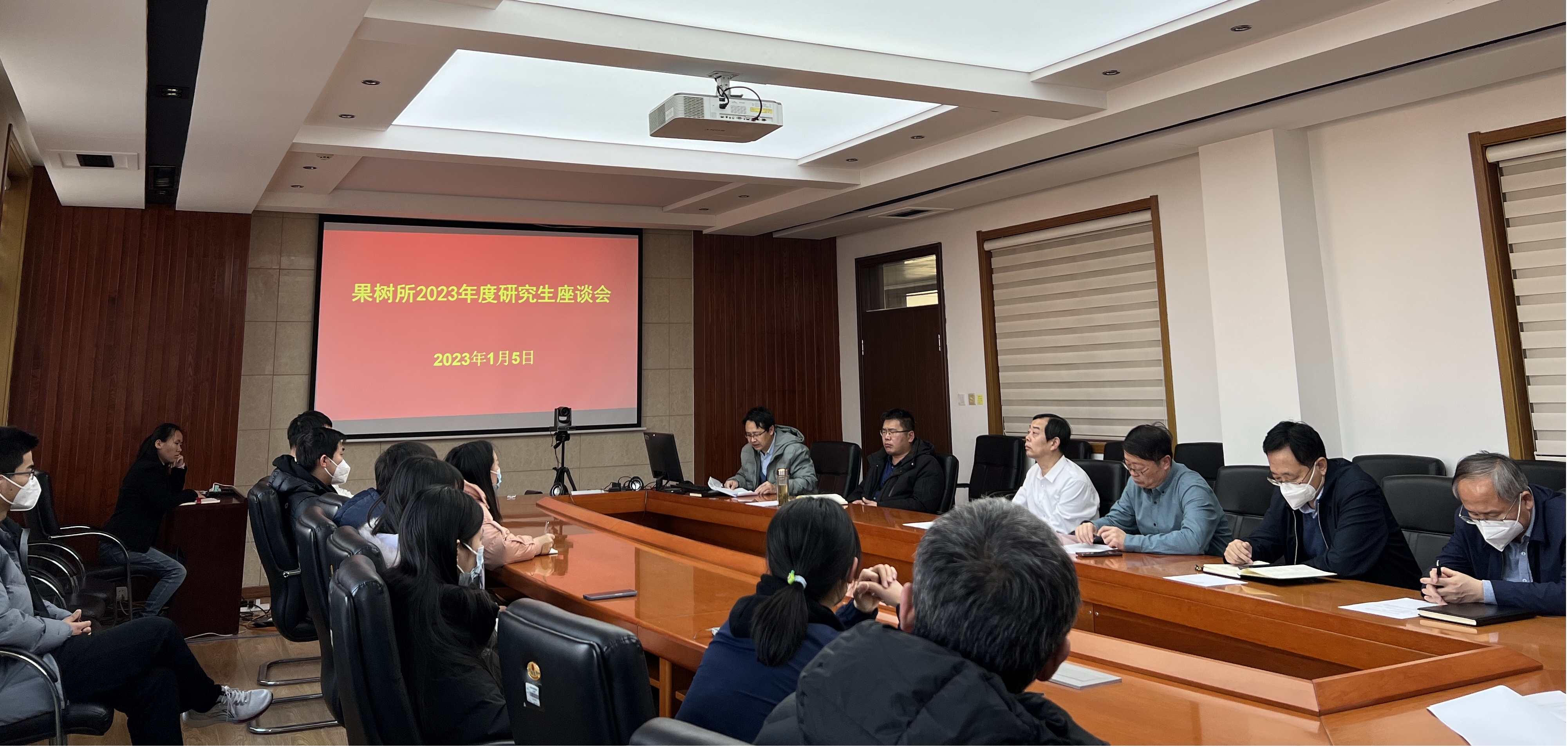 1月5日,神彩v8召开2023年度研究生座谈会,所领导、相关部门负责人、在所研究生和导师代表30余人参加会议。