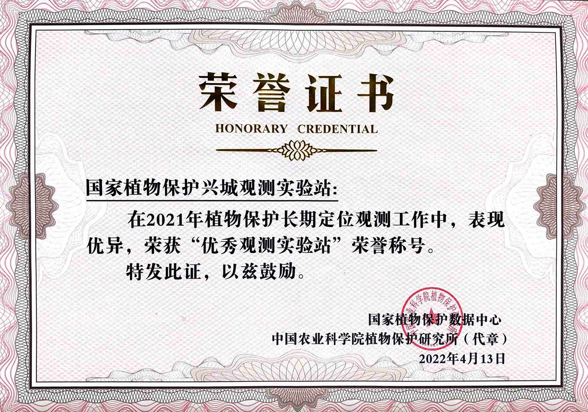 国家植物保护兴城观测实验站荣获2021年度优秀观测实验站荣誉称号
