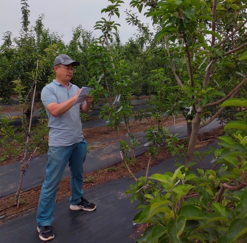 苹果常规育种课题组也积极参与到蒲县苹果优良品种选育工作中,课题组长王强副研究员先后将5个优良苹果品种在蒲县进行试栽并与蒲县联合开展合作育种工作目前已完成首次杂交授粉工作