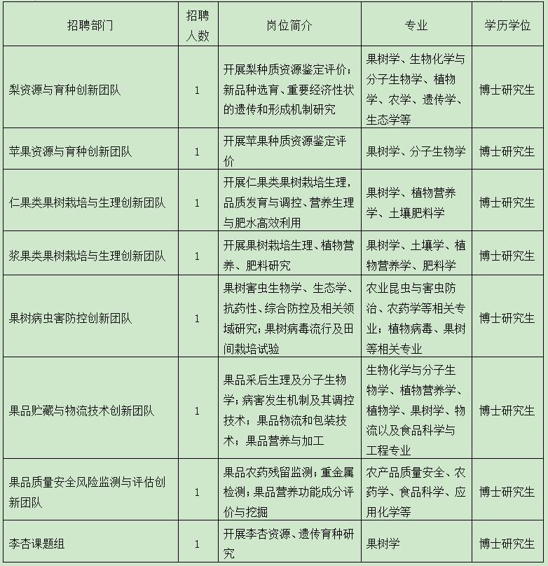 果树研究所2019年度第二轮公开招聘工作人员公告