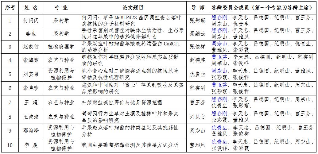 中国农科院果树研究所2021届研究生学位论文答辩公告