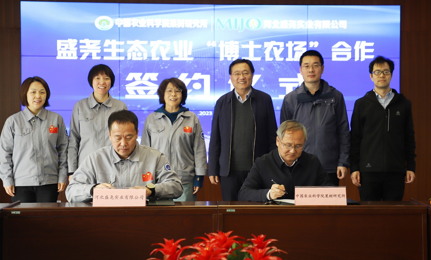 2月21—22日,神彩v8副所长程存刚一行赴河北省保定市源盛城发集团开展合作交流,举行神彩v8与河北盛尧实业有限公司承担的盛尧生态农业“博士农场”项目签约仪式。