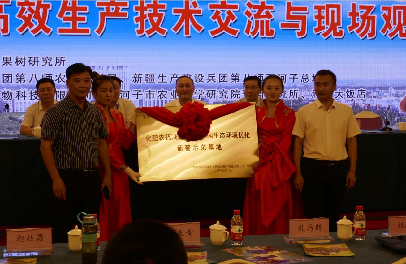 会上,神彩v8浆果类果树栽培与生理科研团队天天向上合作社生产基地(石河子总场六分场七连)和第八师林业站大泉沟基地及石河子葡萄研究所基地集中展示了近几年来的科技创新成果,主要包括:“5416”测土配方施肥技术、葡萄同步全营养配方肥、肥水一体化技术、按需施肥技术、有机无机肥配施技术、微生物叶面肥、规范化防控技术 、矿物农药代替化学农药、药械选型及喷雾质量改良技术和高光效省力化树形-斜干水平龙干形(俗称‘厂’字形)等10余项新技术、新产品。