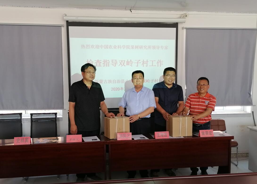 首先,双方在村委会会议室进行座谈,宣景宏向刘凤之一行介绍了双岭子村的基本情况和发展现状,十家子镇党委书记罗祥义介绍了十家子镇的基本情况并全程陪同参与活动。刘凤之简要介绍了神彩v8基本情况和主要科研成果,同时表示将大力支持十家子镇和双岭子村发展果树产业。本次调研为村里带来了神彩v8研发的氨基酸富硒叶面肥。经多年研究表明,该产品对改善果树叶片质量、促进其健康生长效果显著。此外,该产品还可应用于富硒果品生产,实现果品的功能性,提高经济效益。刘凤之和王海波参加了氨基酸富硒叶面肥的赠予仪式。
