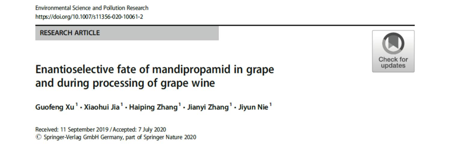 日前,神彩v8果品质量安全课题组利用手性固定相结合HPLC-MS/MS开展了双炔酰菌胺在葡萄及酿酒过程中的立体选择性降解研究,相关研究成果近日以题为“Enantioselective fate of mandipropamid in grape and during processing of grape wine”在线发表在学术期刊《Environmental Science and Pollution Research》上,论文通讯作者、第一作者徐国锋。