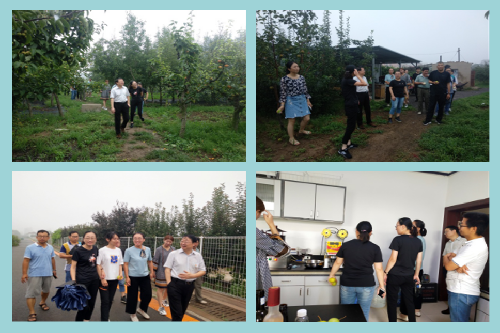 同志们集中参观了梨育种试验基地、苹果资源试验基地及果品采后贮藏保鲜库。王斐和马力详细介绍了多个梨新品种和优系的优异性状,高源详细介绍了苹果种质资源评价方式方法,贾晓辉详细介绍了果品贮藏和加工技术。