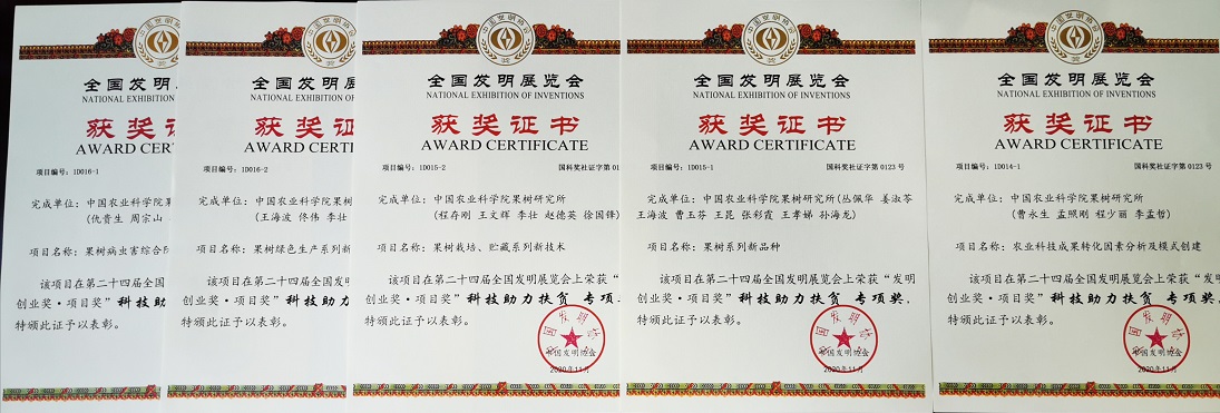 经大会组委会评选,我所推荐项目及成果在本次展会获得 “发明创业奖·项目奖”科技助力扶贫专项奖6项,分别是:农业科技成果转化因素分析及模式创建;果树系列新品种;果树栽培、贮藏系列新技术;果树病虫害综合防控系列新技术;果树绿色生产系列新产品;果树绿色生产技术及模式示范推广。(通讯员:何文上