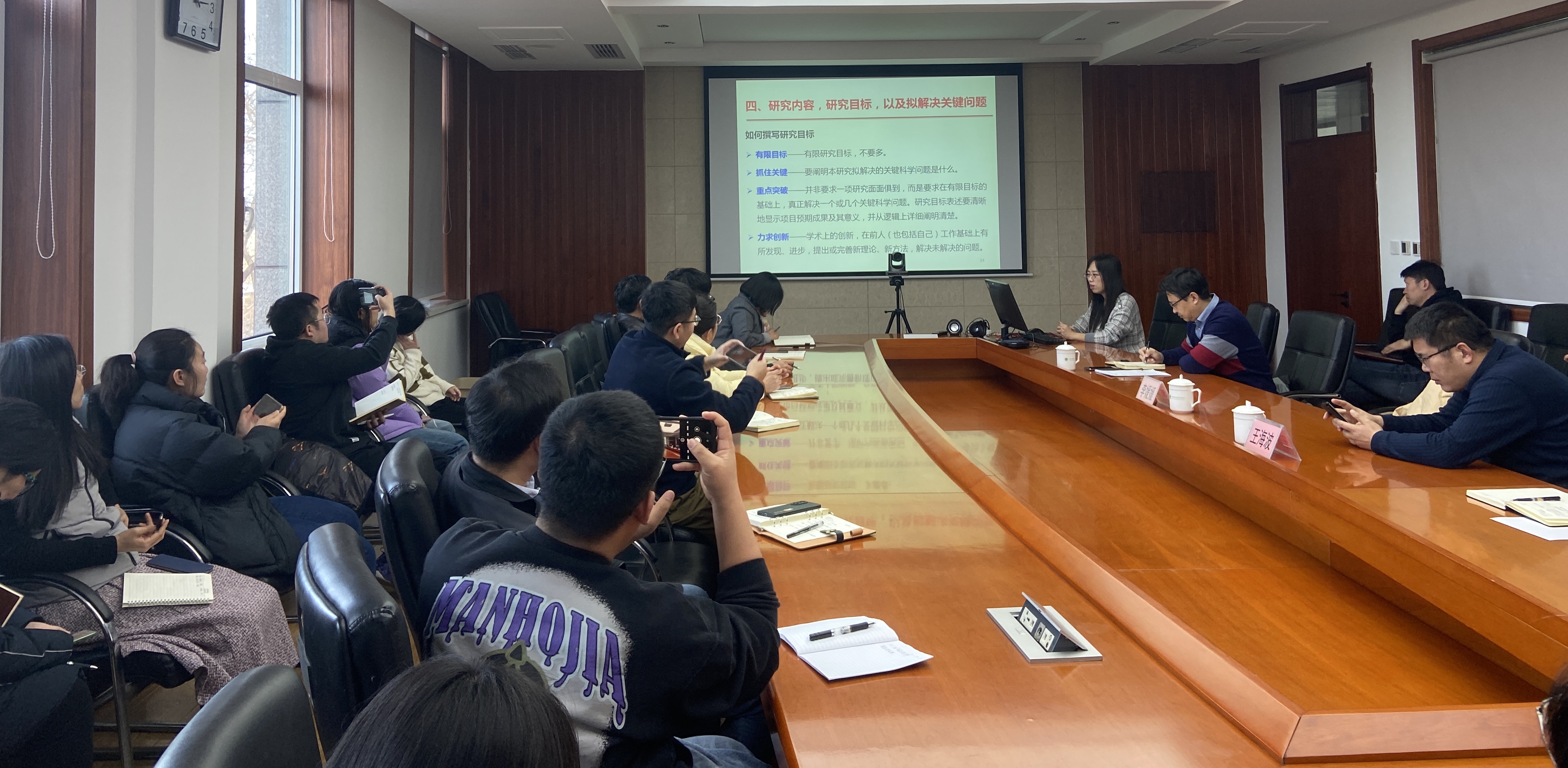 科技管理处首先介绍了国家自然科学基金2023年项目资助概况及2024年改革举措和工作注意事项,李媛媛教授分别从项目申报前准备、申报书的总体要求、正文各个部分的撰写技巧等几方面交流了个人撰写项目申请书的体会,并对科研人员感兴趣的话题进行现场答疑,与会人员围绕如何写好申报书展开讨论交流。