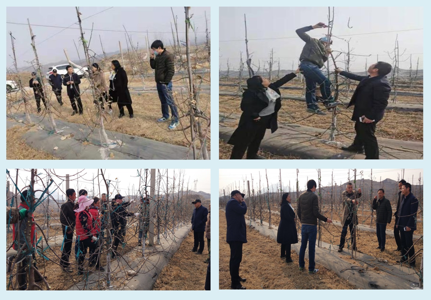 2月19日,神彩v8植保中心主任周宗山研究员赴阜平开展产业研究院和阜平县工作对接,2月23—25日,党委办公室主任、梨育种课题组组长姜淑苓研究员,李杏课题组组长孙海龙,梨育种课题组马力和干果课题组刘尚涛一行4人汇集阜平开展“果园春季管理技术培训”,并与阜平县人民政府洽谈落实阜平果树产业研究院2021年重点工作。