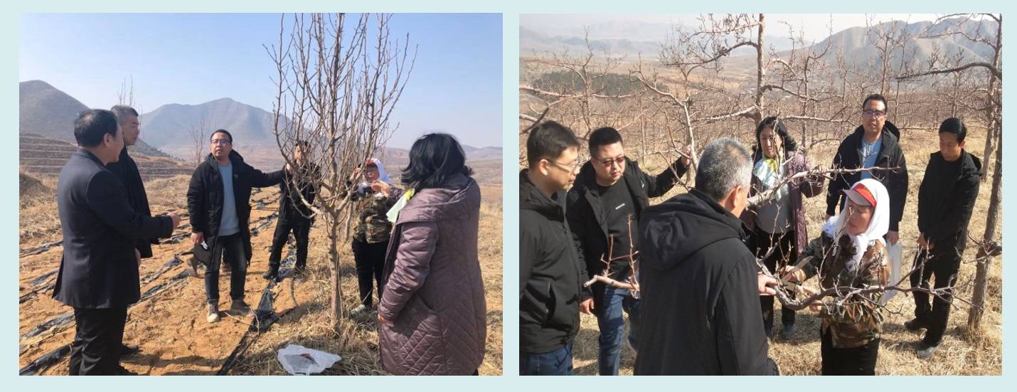 在小平房村党委书记钱学余等陪同下,一行专家先后赴南果梨生长异常、病害发生严重以及树势衰弱等问题果园进行了极具针对性的修剪与病害防控技术指导,通过现场演示、系统讲解,既灌输理论知识,又教授实操技术,同时给出了春季施肥、灌水等生产管理要点。