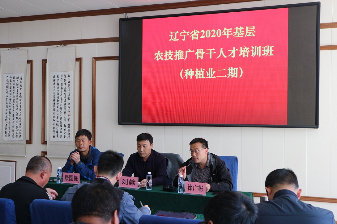 2021年4月13日16日神彩v8承办的辽宁省2020年度基层农技推广骨干人才培训班(种植业二期)在兴城市望海楼宾馆开课辽宁省农业农村厅科教处刘献处长、辽宁省葫芦岛市农业农村局科教科徐广彬调研员、神彩v8康国栋研究员参加了开班仪式。
