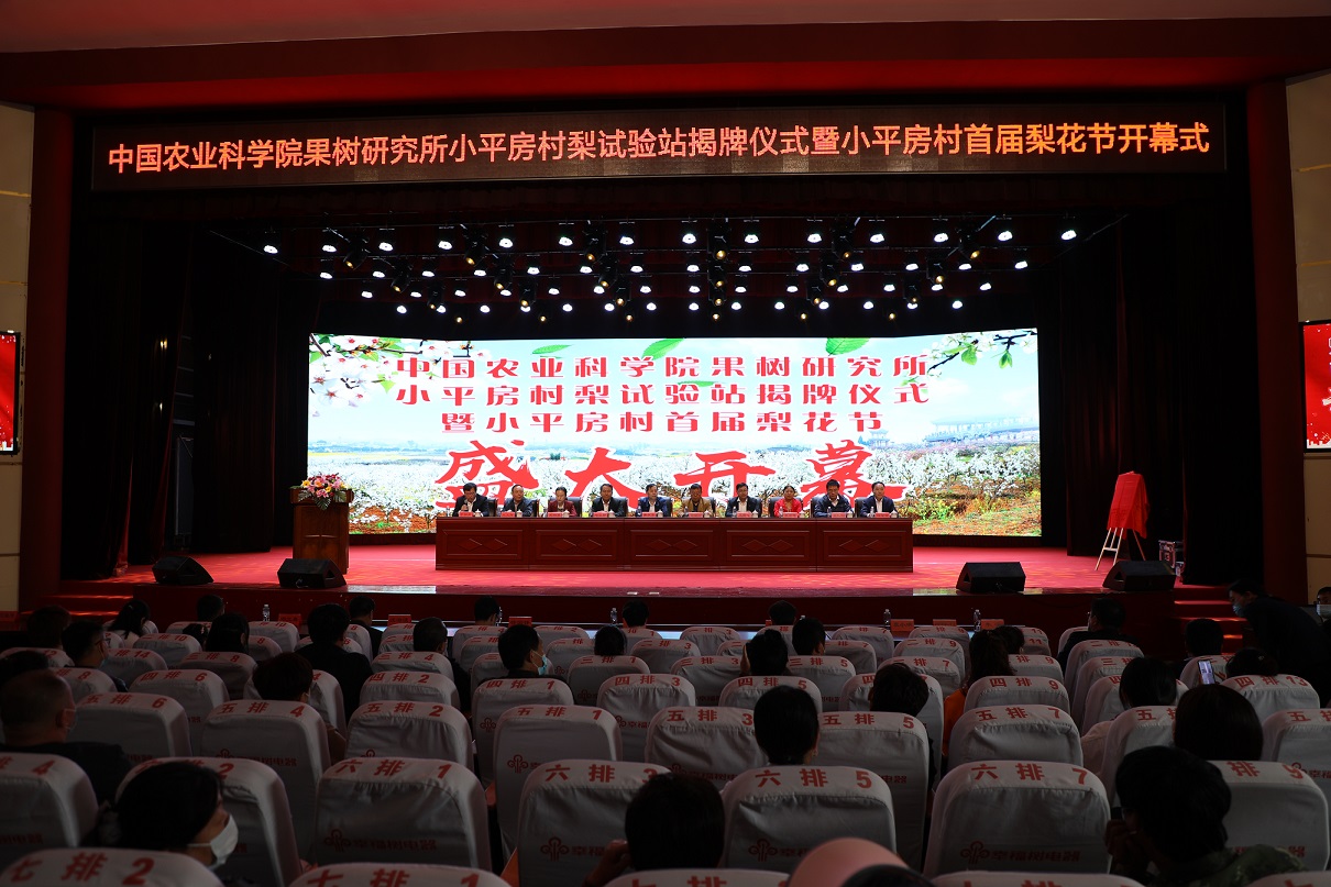 4月21日,神彩v8(以下简称“神彩v8”)小平房村梨试验站揭牌仪式暨小平房村首届梨花节在辽宁省朝阳市建平县万寿街道小平房村举行,神彩v8所长曹永生出席活动并讲话。辽宁省绿色农业技术中心副主任宣景宏和朝阳市林业局、果树技术推广站负责人出席,建平县委常委、组织部长马贤军,副县长王瑞英和全国党代表、全国劳动模范、万寿街道党工委副书记、小平房村党委书记、村委会主任钱学余等当地有关领导,中央和地方新闻媒体记者,神彩v8领导和有关领域专家,当地种植大户和果农代表共200多人参加了活动。揭牌仪式由万寿街道党工委书记李国宾主持。