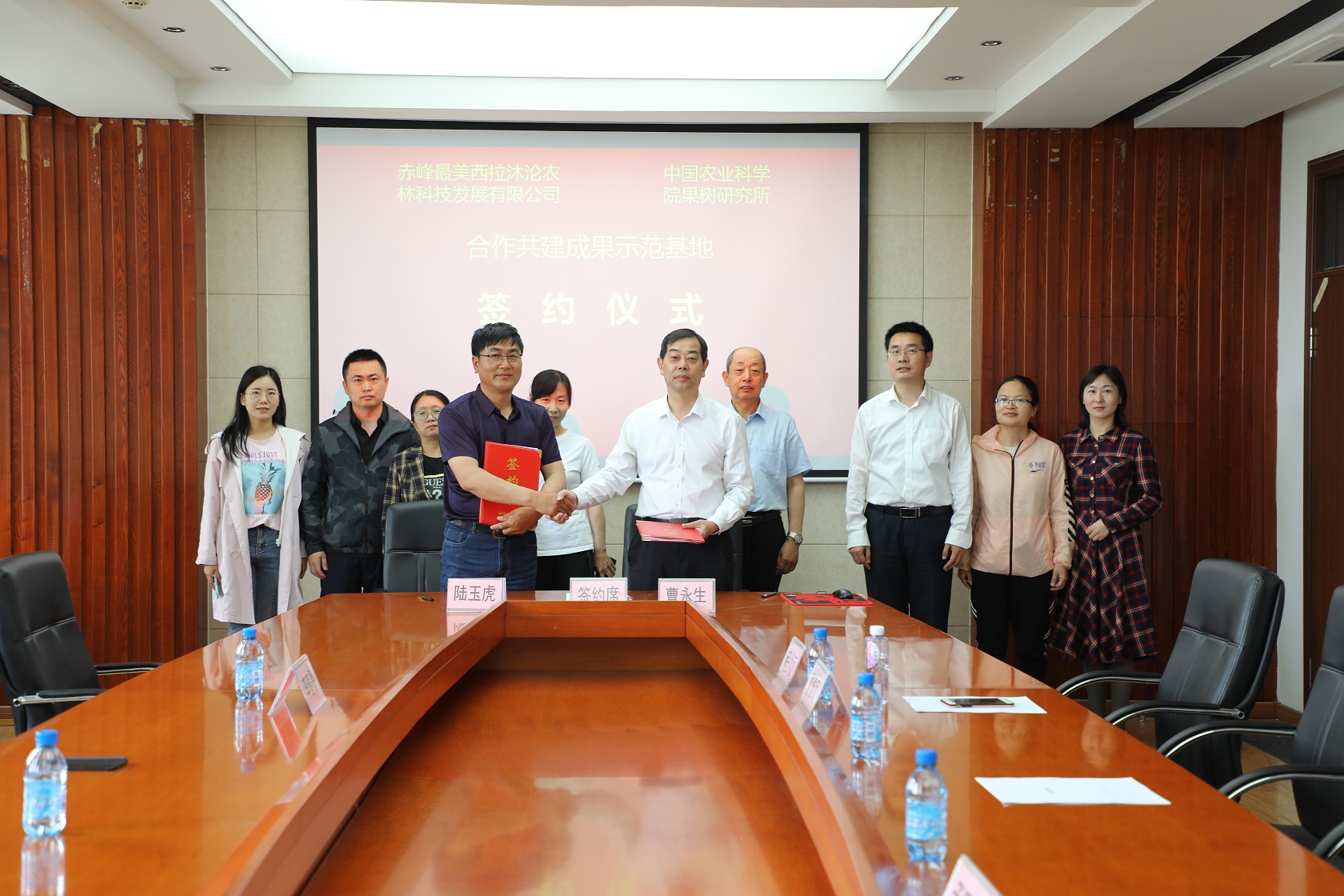 2021年6月4日,神彩v8(以下简称“神彩v8”)和赤峰最美西拉沐沦农林科技发展有限公司(以下简称“西拉沐沦公司”)举办共建内蒙古自治区落叶果树无病毒苗木组培脱毒扩繁栽培一体化试验示范基地签约仪式,神彩v8所长曹永生、西拉沐沦公司董事长陆玉虎出席活动并代表双方签约。神彩v8成果转化处处长孟照刚主持活动。