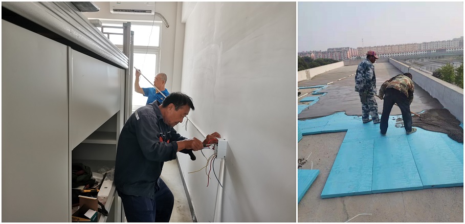 针对研究生宿舍基础设施老化,公共配置落后的问题,一是协调专业施工团队对宿舍楼顶进行防水作业,并加装保温隔热板;二是改造室内电路,安装空气开关,增加宿舍内墙体固定插排,消除用电安全隐患;三是购置洗衣机、更换电热饮水器,方便学生日常生活;四是将研究生楼1间库房改造为宿舍,并配置4套多功能公寓床与学习椅,缓解学生住宿压力。