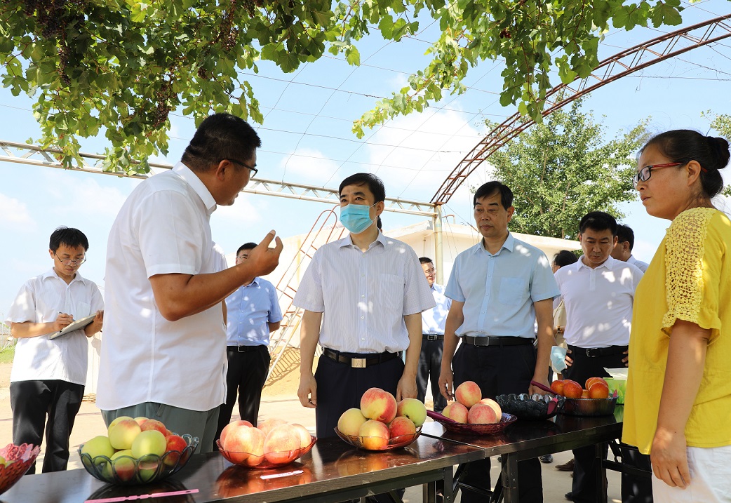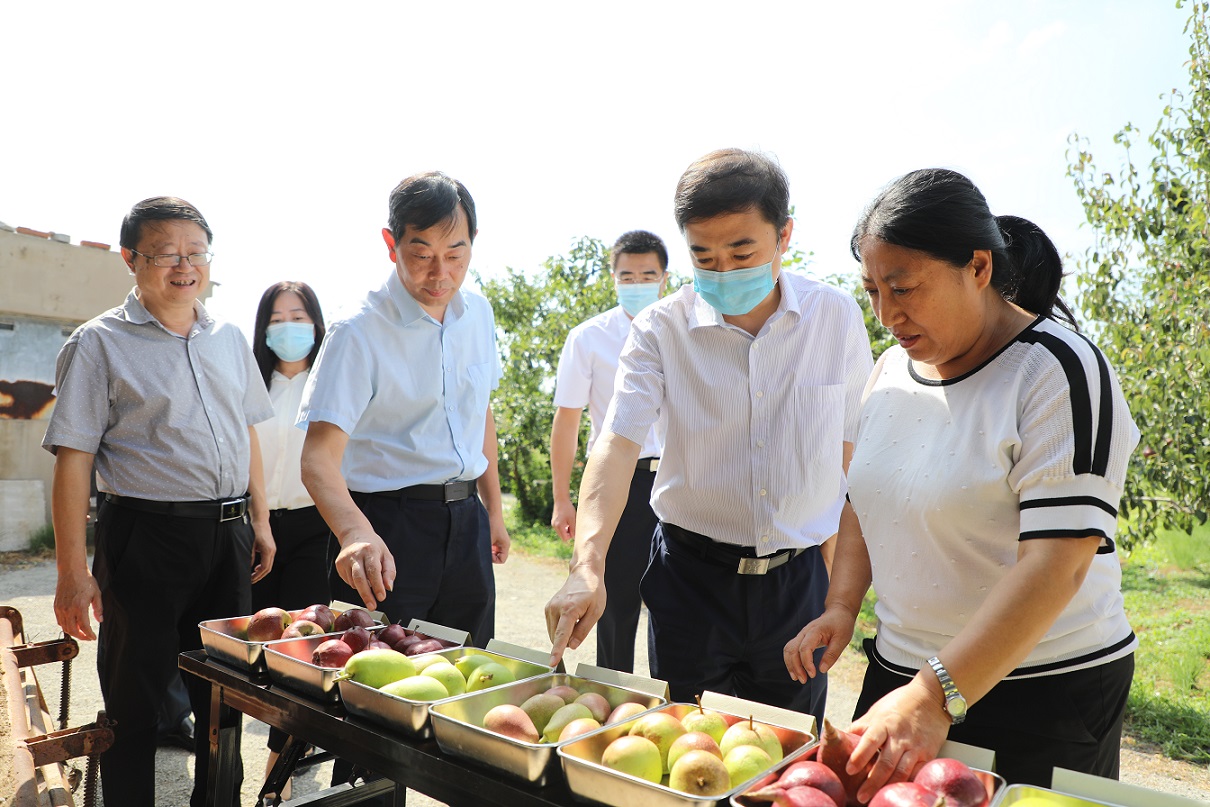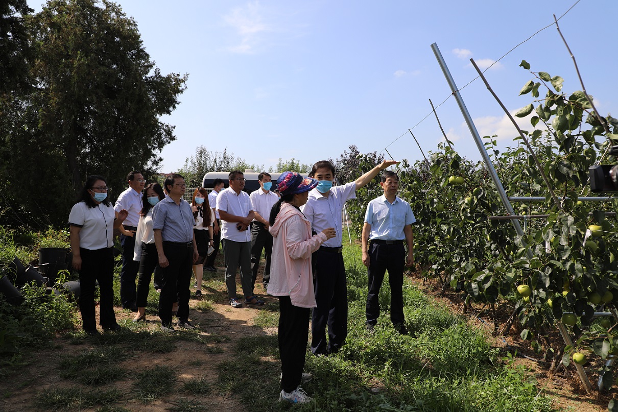 王大南一行在曹永生等人陪同下,深入神彩v8温泉试验基地的梨新品种选育、栽培模式试验示范园和设施果树栽培试验示范区实地调研,听取相关领域专家关于选育好吃、好看、好种、好卖、好想的果树新品种,研发节本、优质、高效、省力的果树新型栽培模式,设施果树和无土栽培管理技术及推广转化情况介绍。