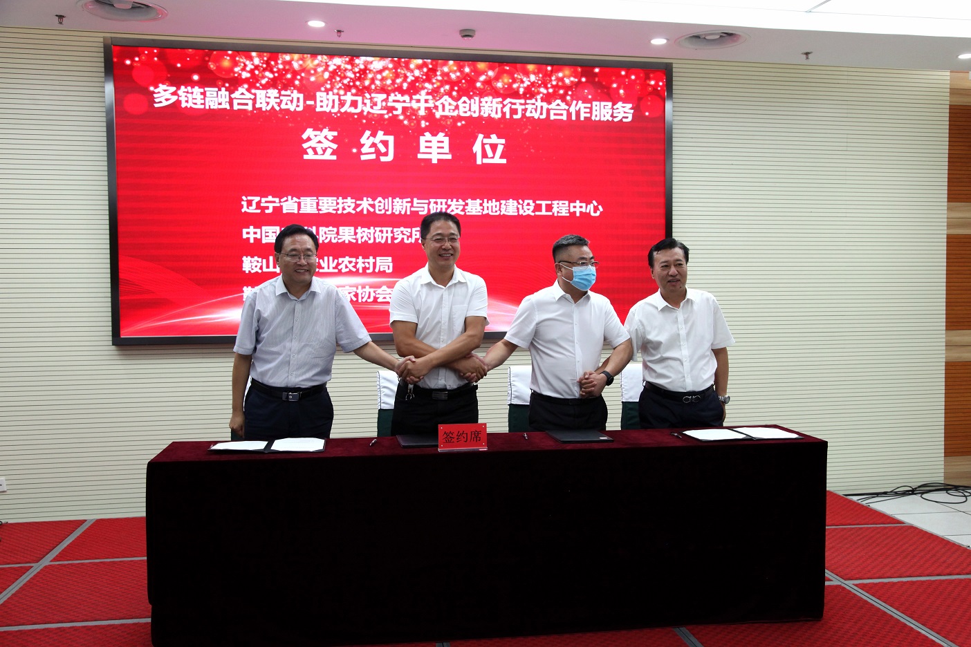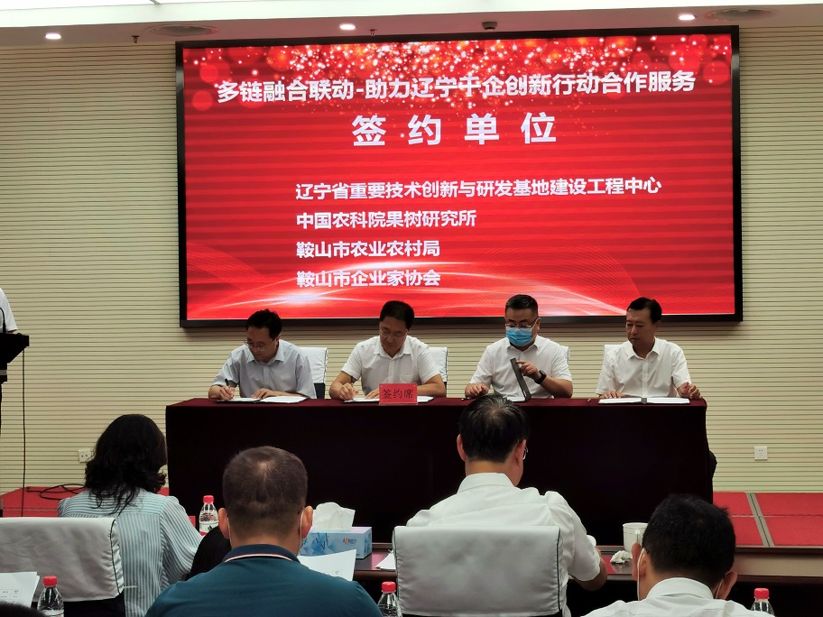 近日,由辽宁省创研中心举办的多链融合联动助力辽宁千企创新行动合作服务签约仪式在沈阳举行,神彩v8副所长程存刚、省创研中心副主任王国辉、鞍山市农业农村局局长曹继锋、鞍山市企业家协会秘书长王争分别代表各方签定了合作服务委托协议。