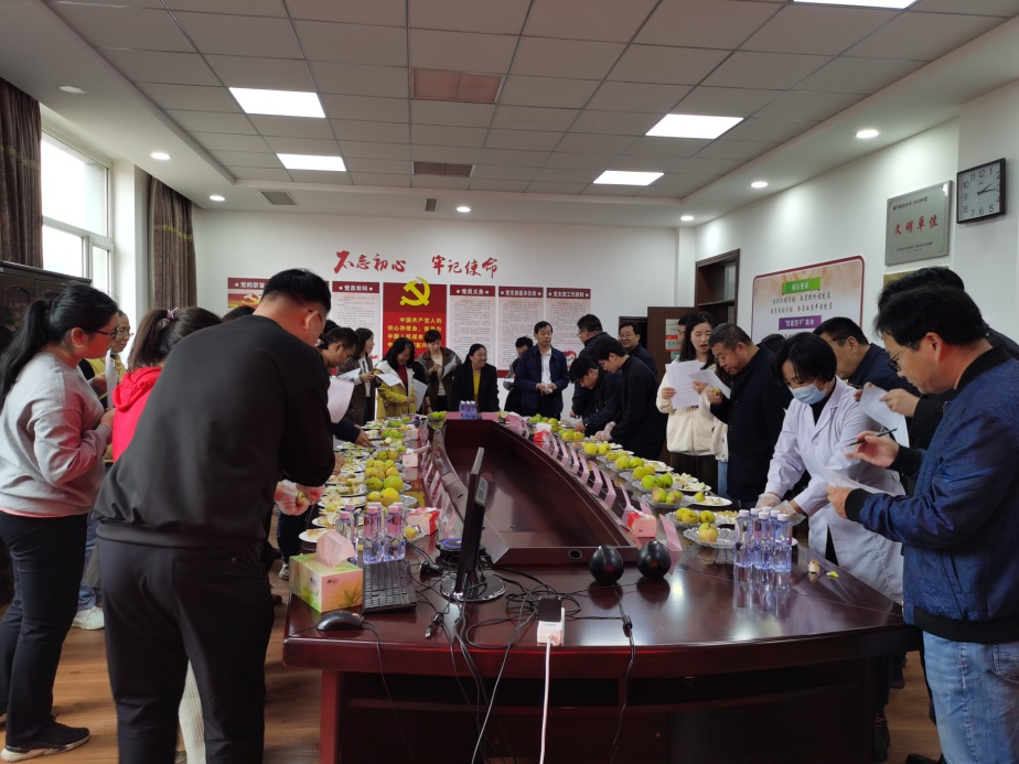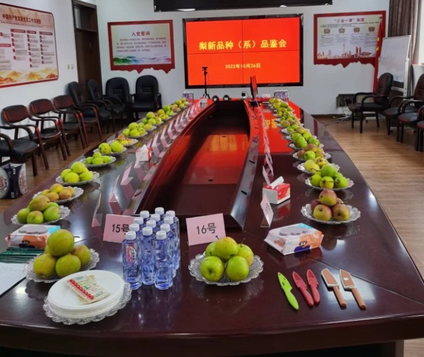参会人员对样品的外观、肉质、风味、汁液和香气等性状进行打分,评选出综合性状优异的梨新品种(系)。