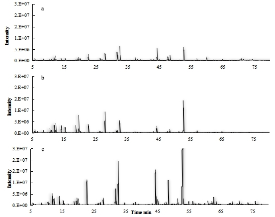 2 匀浆前后加入NaCl苹果香气物质GC-MS色谱图对比