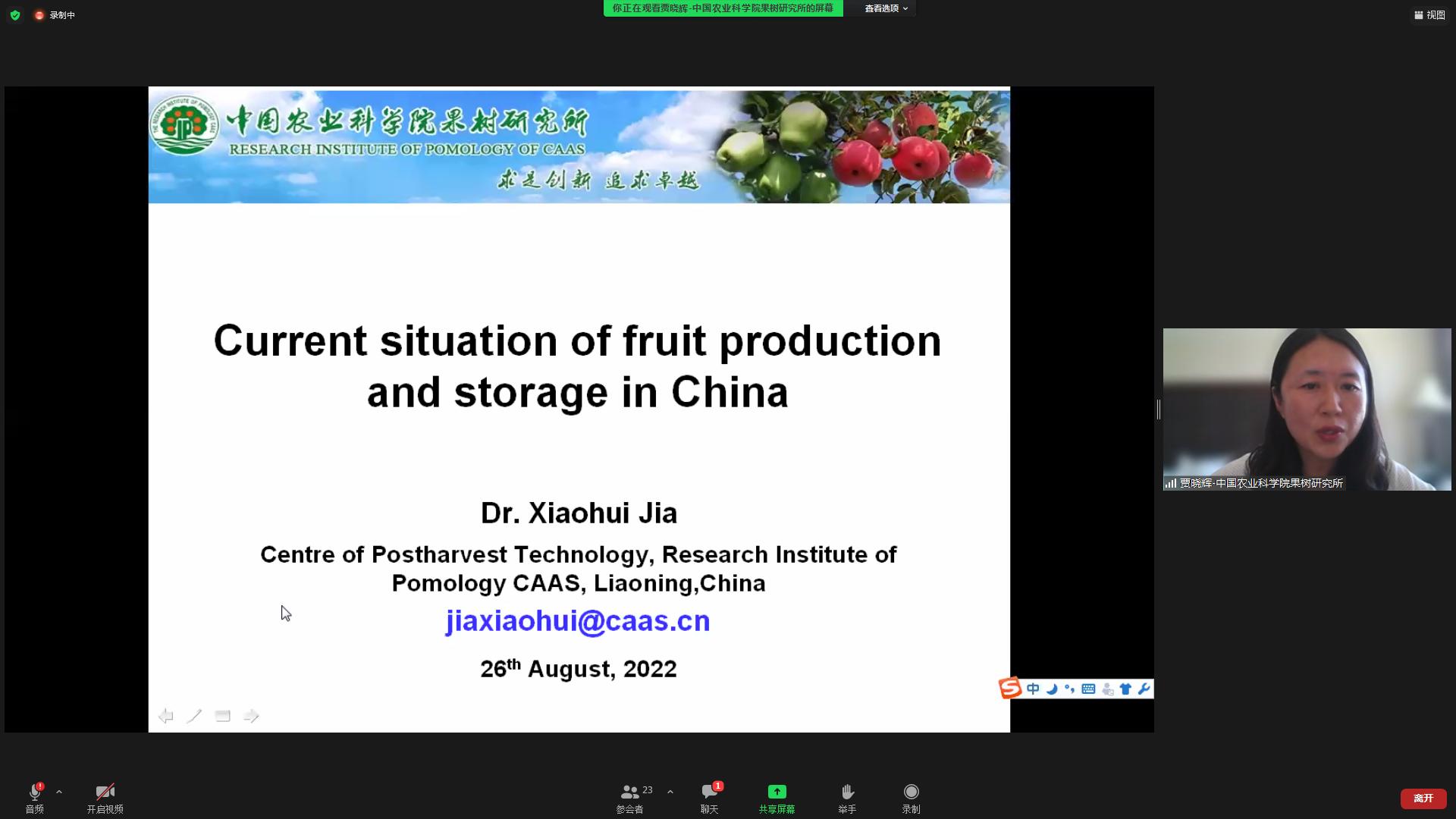 2022825-28日,我所贾晓辉研究员应云南省农业科学院国际农业研究所徐璐研究员邀请,线上出席了 “第六届南亚东南亚农业科技创新研讨会(6th IAAST-SSA”。贾晓辉在大会上作了题为“我国水果贮藏保鲜及病害控制关键技术(Key techniques for preservation and disease control of fruits during storage in China”的主题报告,对我国水果贮藏加工现状、水果保鲜及采后病害防治技术进行了综述和分析。