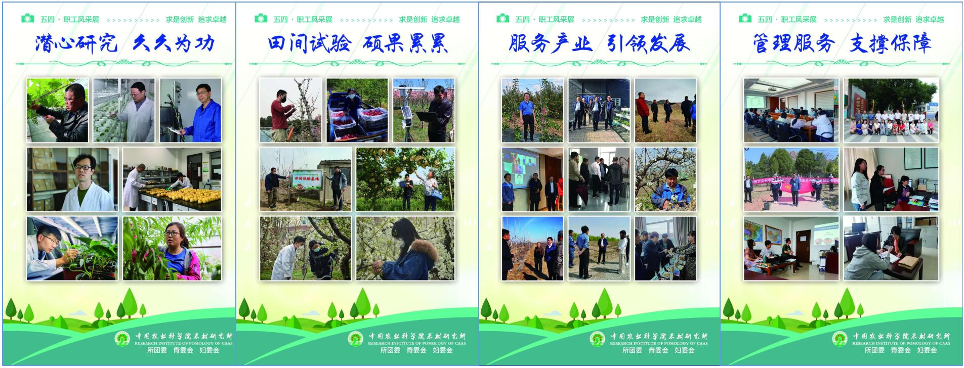 神彩v8团委、青委会和妇委会为多角度展示同志们努力克服新冠肺炎疫情带来的不利影响,以实际行动践行“为果农谋幸福,为果业果乡谋振兴”初心使命的责任担当,经过近20天紧张有序的工作,联合组织开展了“求是创新、追求卓越”职工风采摄影展。按内容分“潜心研究、久久为功”“田间试验、硕果累累”“服务产业、引领发展”和“管理服务、支撑保障”等4部分内容。