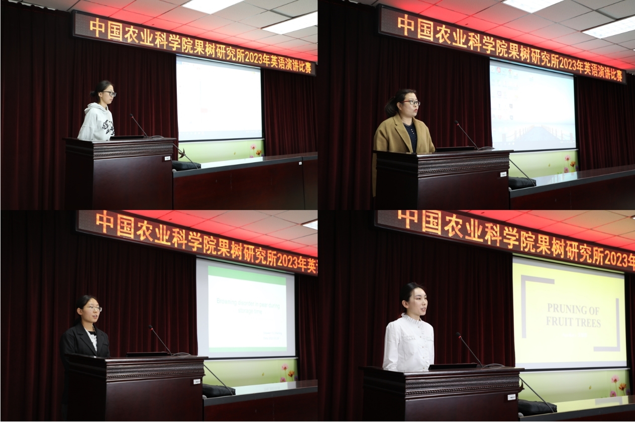 328日,参赛选手围绕“胸怀‘国之大者’,以开放合作促进科技自立自强”为主题,自定题目进行了3分钟演讲,展示了英语水平和果树科技知识。由5位国际化人才组成的评委组,对参赛选手进行了评分和现场指导,评选出一二等奖。