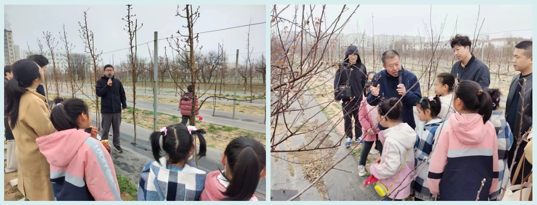 来到保有4000余份的国家苹果、梨种质圃里,一株株高矮不同、形状各异、颜色多样苹果、梨树茁壮的生长着,与地面上的小草、小花等相得益彰,引得小朋友们也向风一样奔向它们,与它们近距离接触,感受春天的味道。